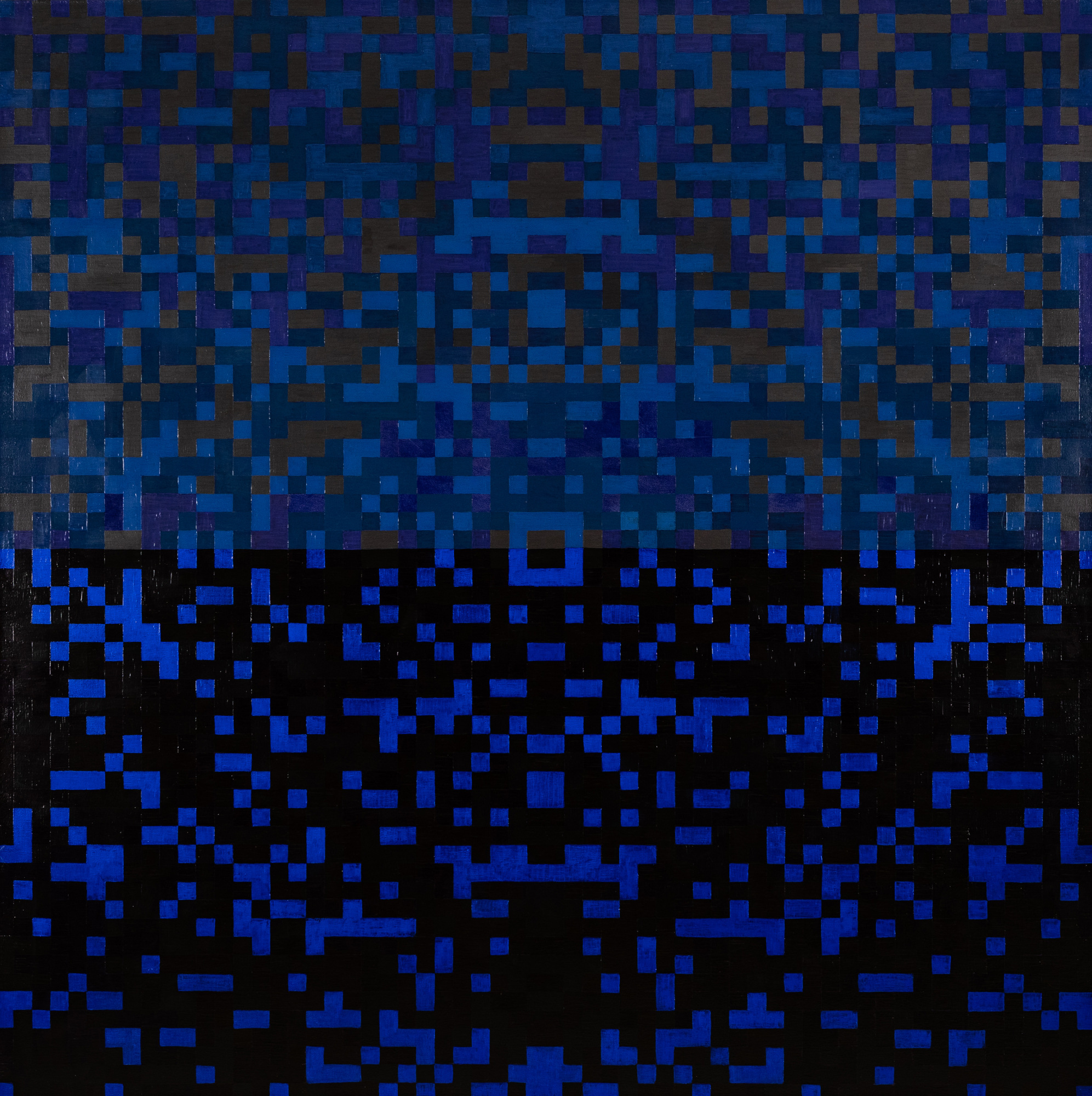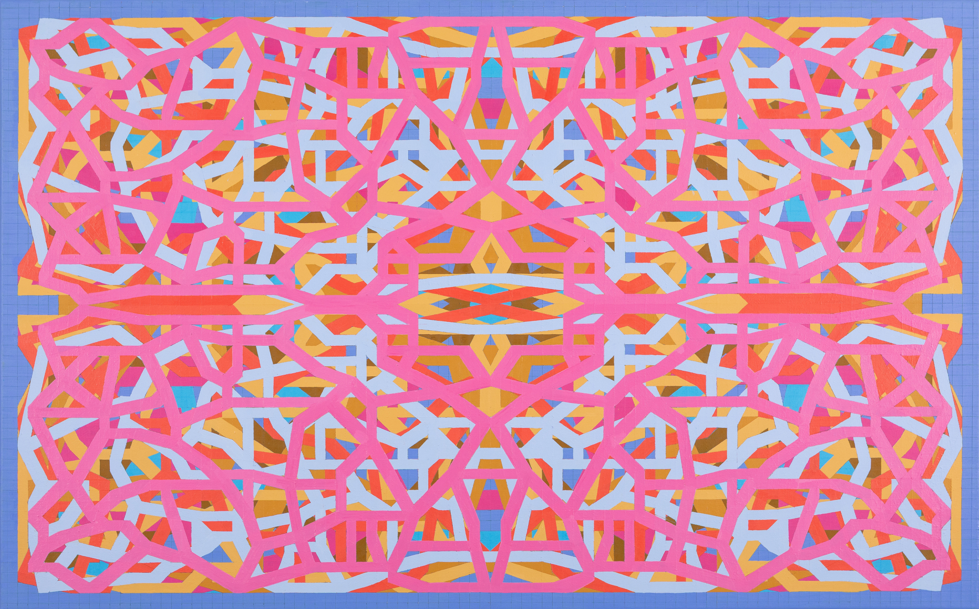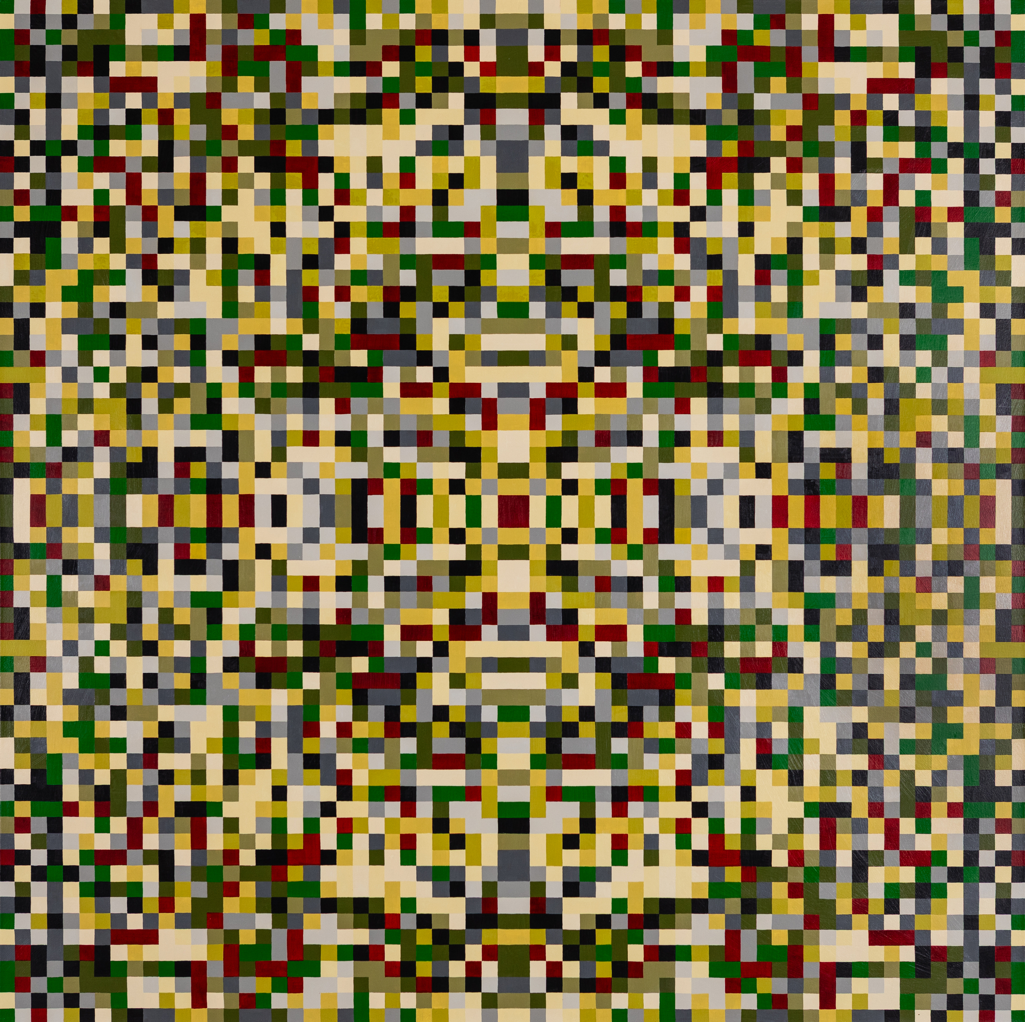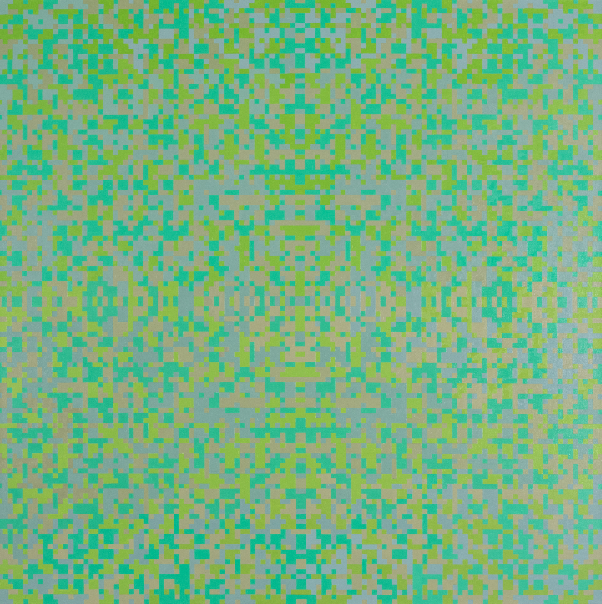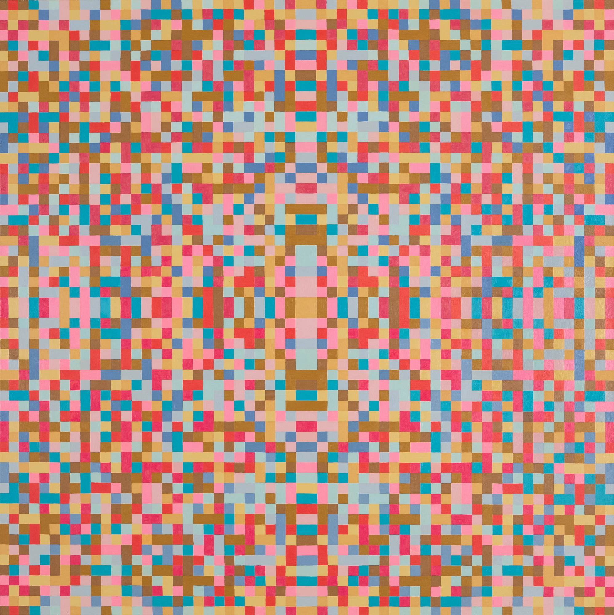 What began as an inquiry into symmetry gradually shifted toward a broader interest in emergence itself: how structure can function as an environment in which experience unfolds, rather than as an image to be controlled. Over time, palindromes and chiral forms gave way to larger fields built from mathematical relationships, mirrored quadrants, and frameworks that permit randomness to operate within strict limits. The solution is embedded in the system, and the act of painting becomes a process of revelation, watching coherence appear through rhythm, repetition, and chance.